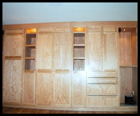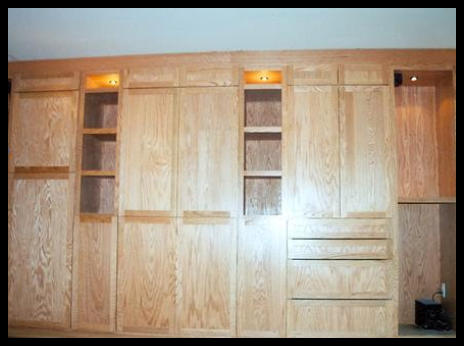These functional oak built-in storage cabinets were built