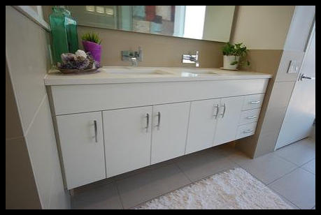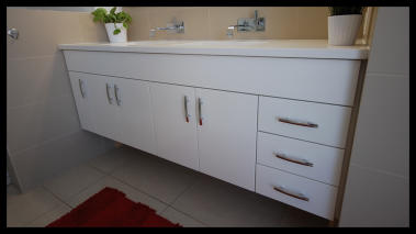 her new wall to wall floating bathroom vanity.