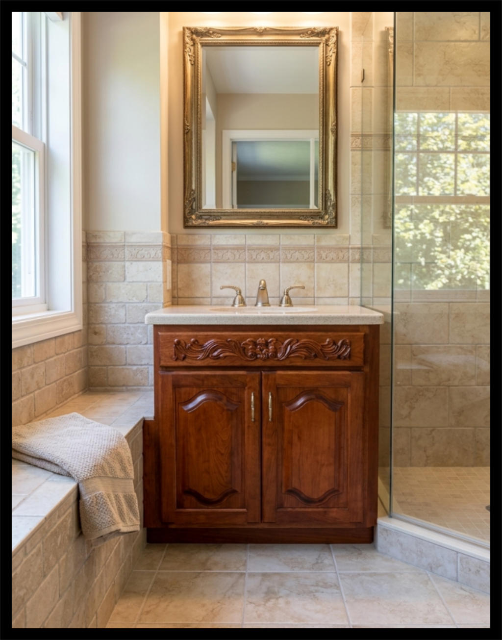 vanity that showcased the rich, natural beauty of solid cherry. Every detail was